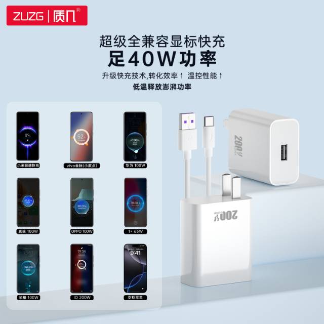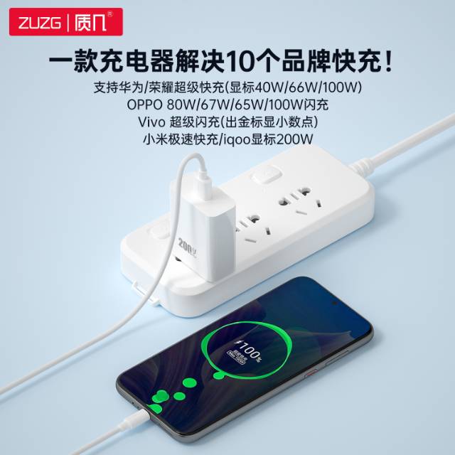 2.支持华为/荣耀超级快充(显标40W 66W 100W)、IQOO 显标200W、Vivo 超级闪充(金标小数点)、 OPPO 100W 80W 67W 65W 闪充、小米极速快充等一款充电器解决10个品牌快充
