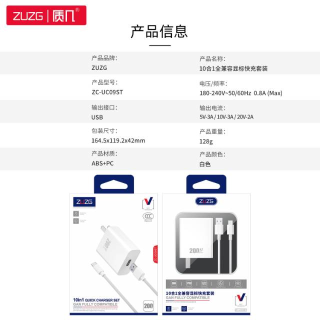 ZC-UC09ST升级款200W全兼容显标快充充电器