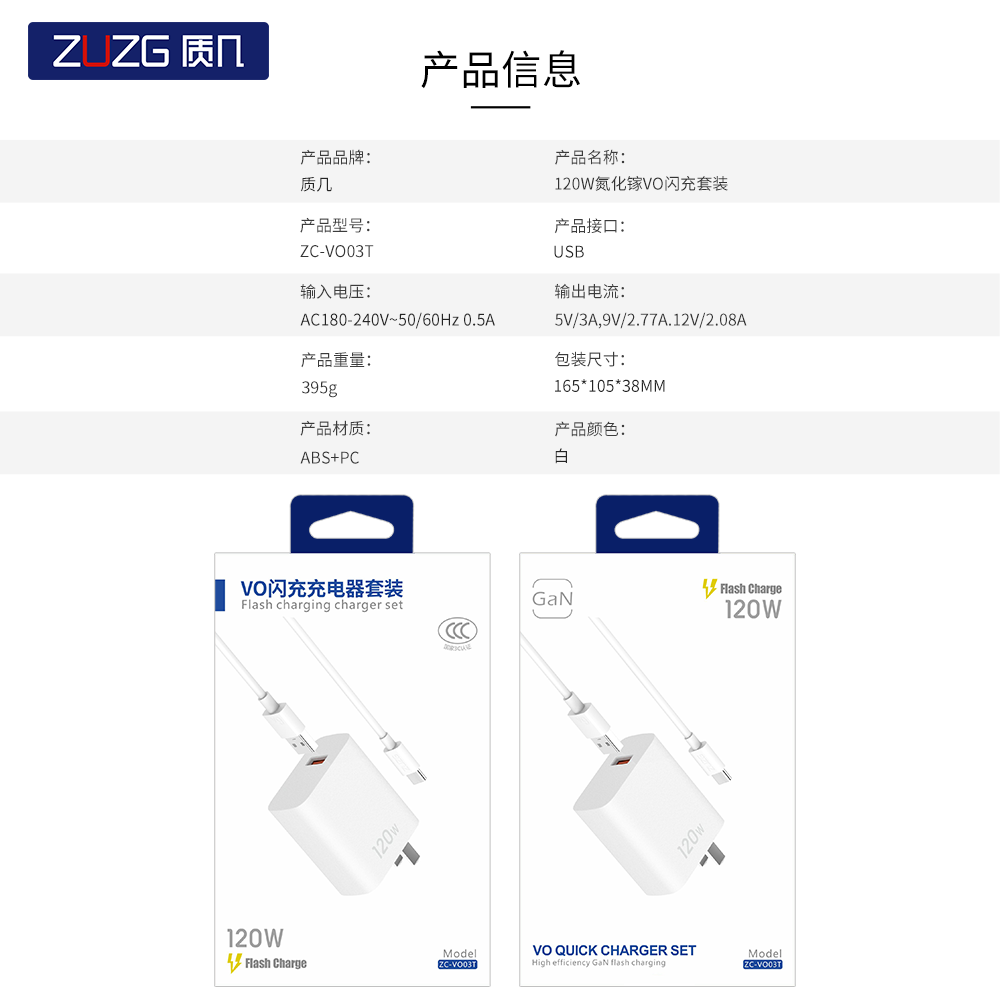 VIVO专充 ZC-VO03T 120W氮化镓超级闪充套装