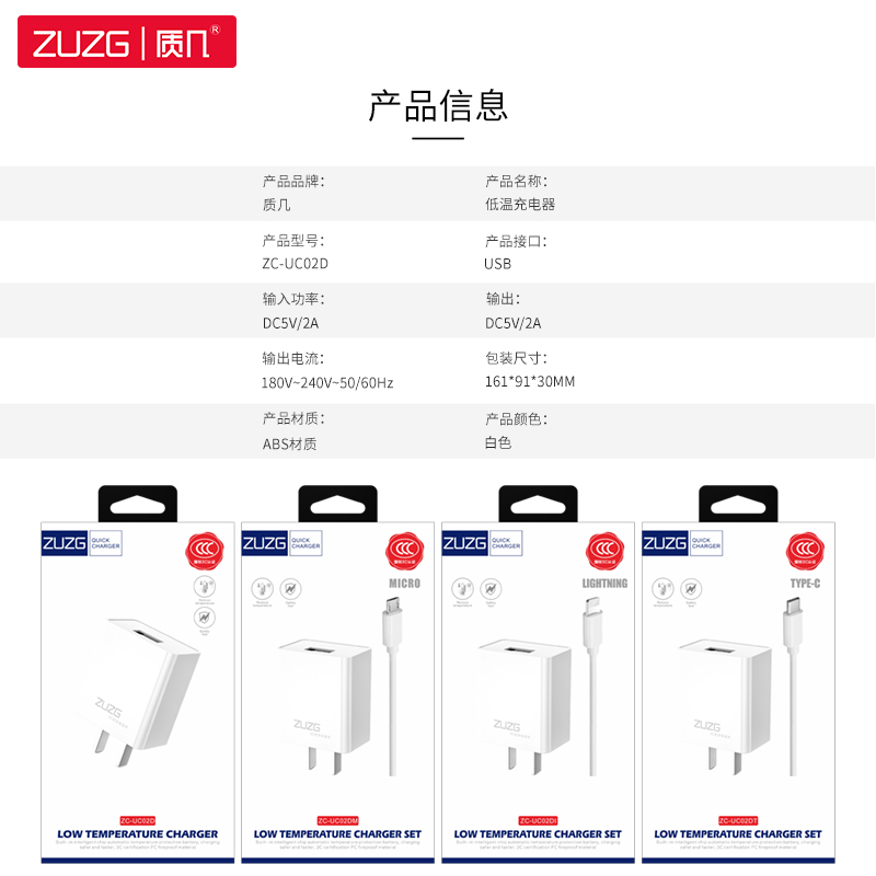 类型:低温充3C国标充电器 /UC02D (V8套充)/ UC02D(苹果套充)/ UC02D(TP-C套充)